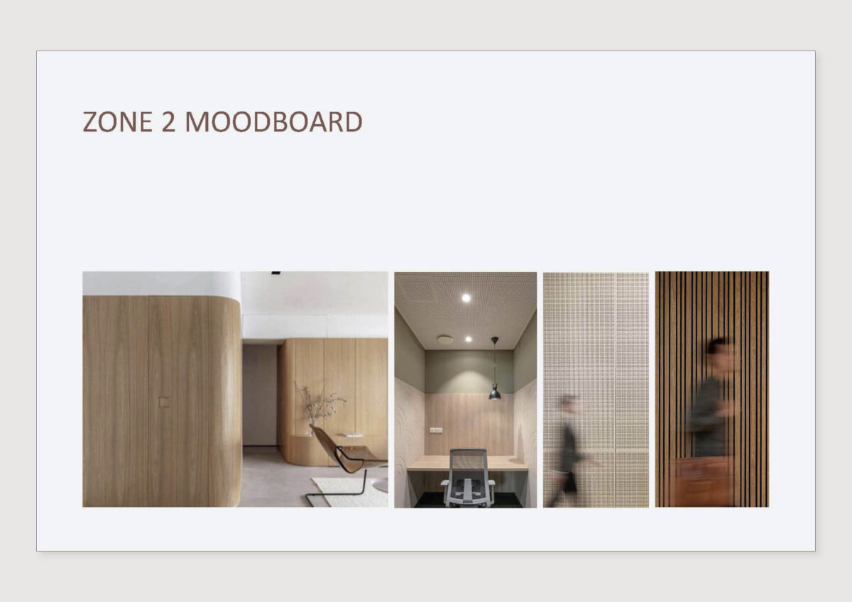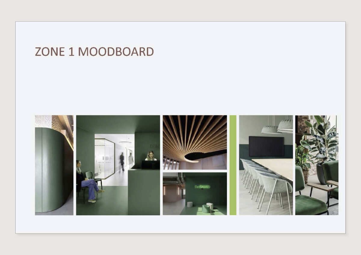 Als voorbereiding op de verhuizing had de interne werkgroep interieur, samen met medewerkers, moodboards gemaakt om wensen en uitgangspunten visueel te maken. Daarnaast zijn we met de verschillende afdelingen in gesprek gegaan om scherp te krijgen wat belangrijk is voor het goed functioneren van het gebouw. Deze inzichten vormden de basis voor het ontwerp.